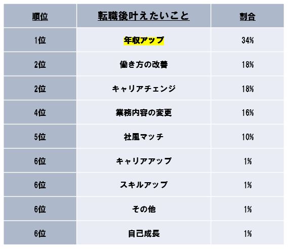 転職後叶えたいこと第1位は「年収アップ」の回答がダントツ