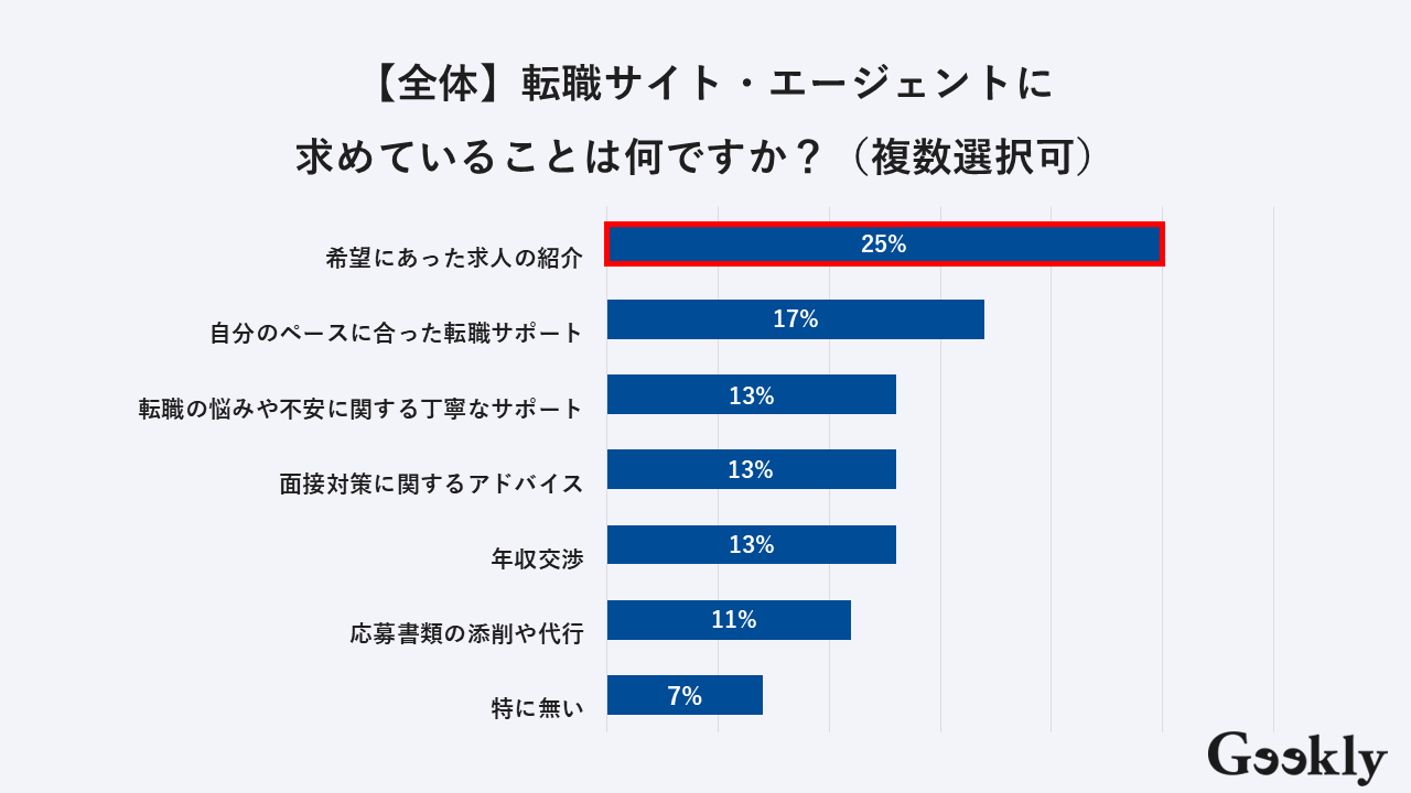 どの職種でも共通して「希望にあった求人の紹介」を求めている方が多いことが分かりました。