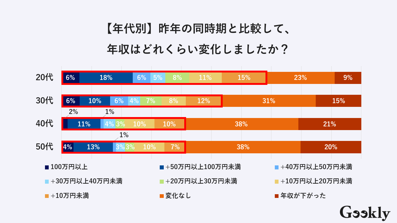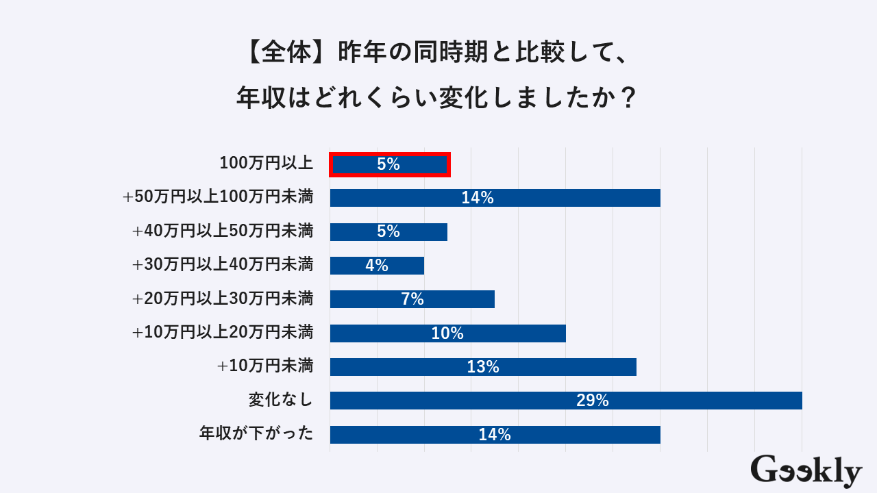- 昨年の同時期と比較して、年収はどれくらい変化しましたか?