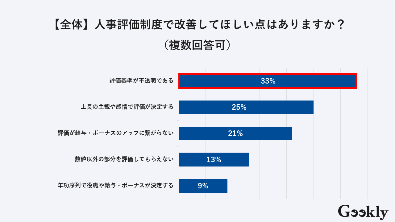 - 人事評価制度で改善してほしい点はありますか?(複数回答可)