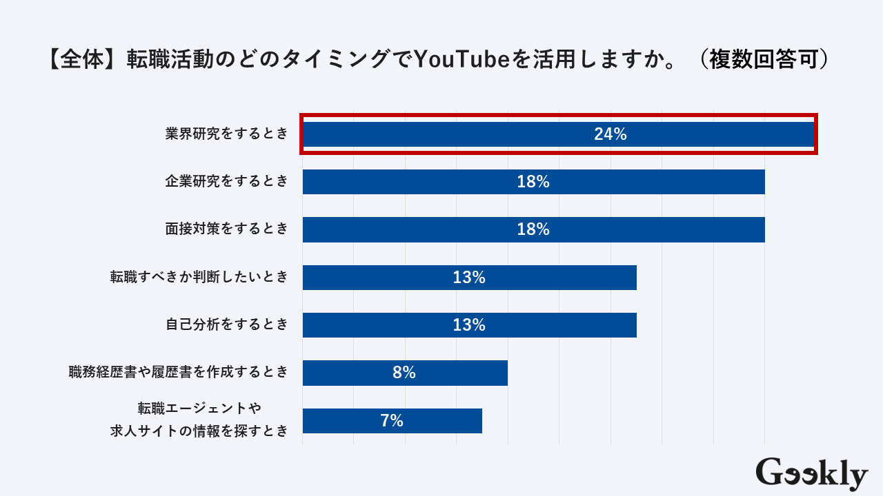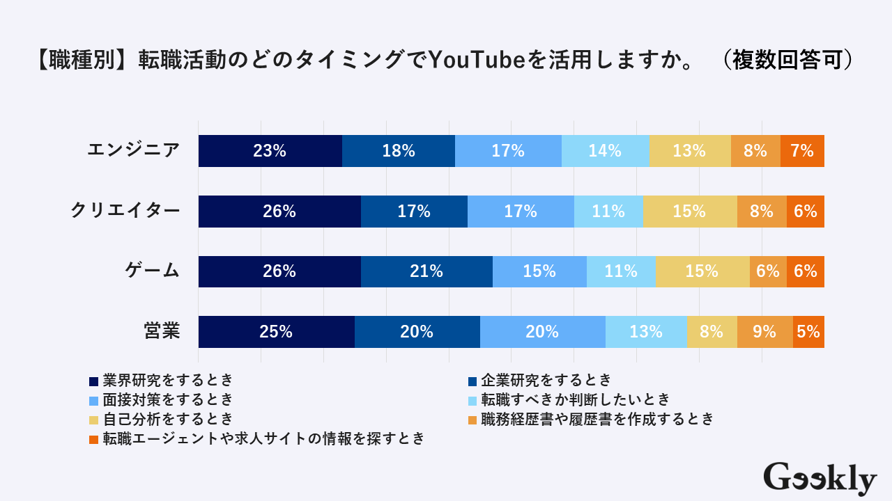 職種別で転職活動でYouTubeを活用するタイミングについて見てみると、