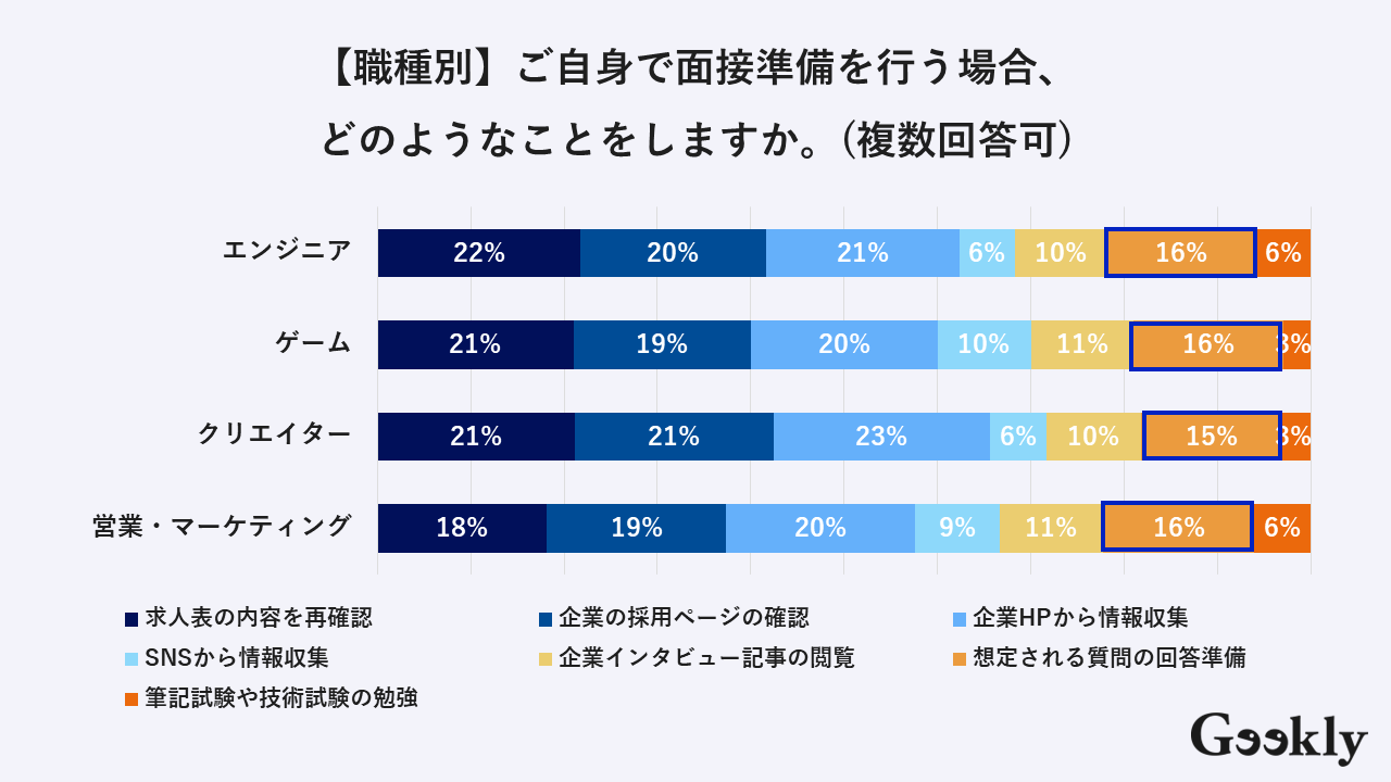 弊社ギークリーで行った面接準備に関する年代別のアンケート結果について、以下で解説しています。