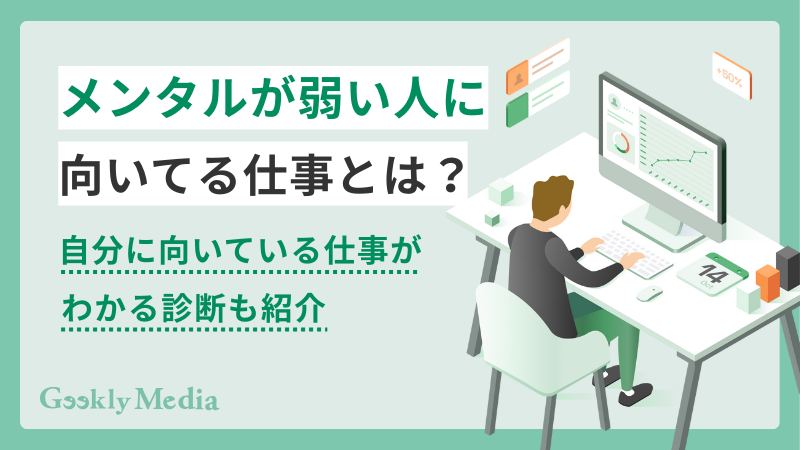 この記事では、ストレス耐性が低い、メンタルが弱いと感じる人に向いている仕事を解説します。一人でできる、在宅など、ストレスを感じやすい人に向いている仕事には特徴があります。仕事が続かない、辞めたいと悩む時は、適職がわかる診断も活用しましょう。