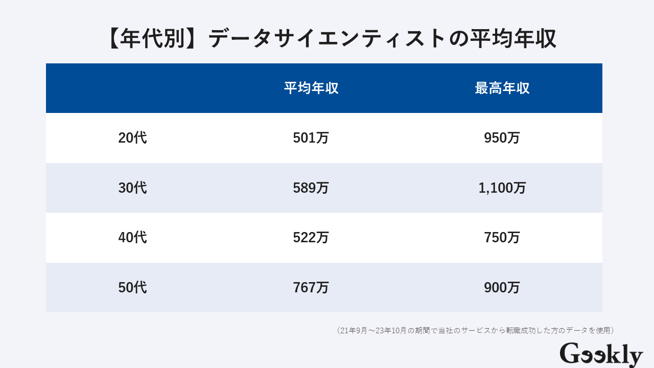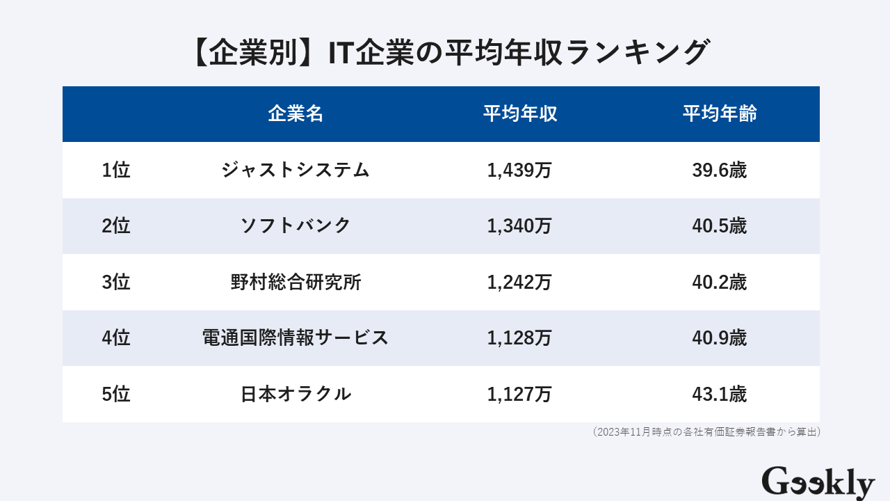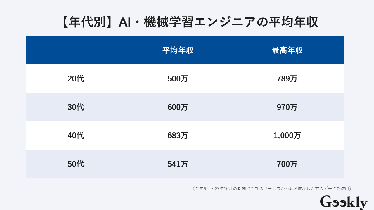 Geekly(ギークリー)で2024年9月~2025年8月の間に面接へ訪れた方に調査を行ったところ、ITエンジニアの平均年収は537万円という結果になりました。