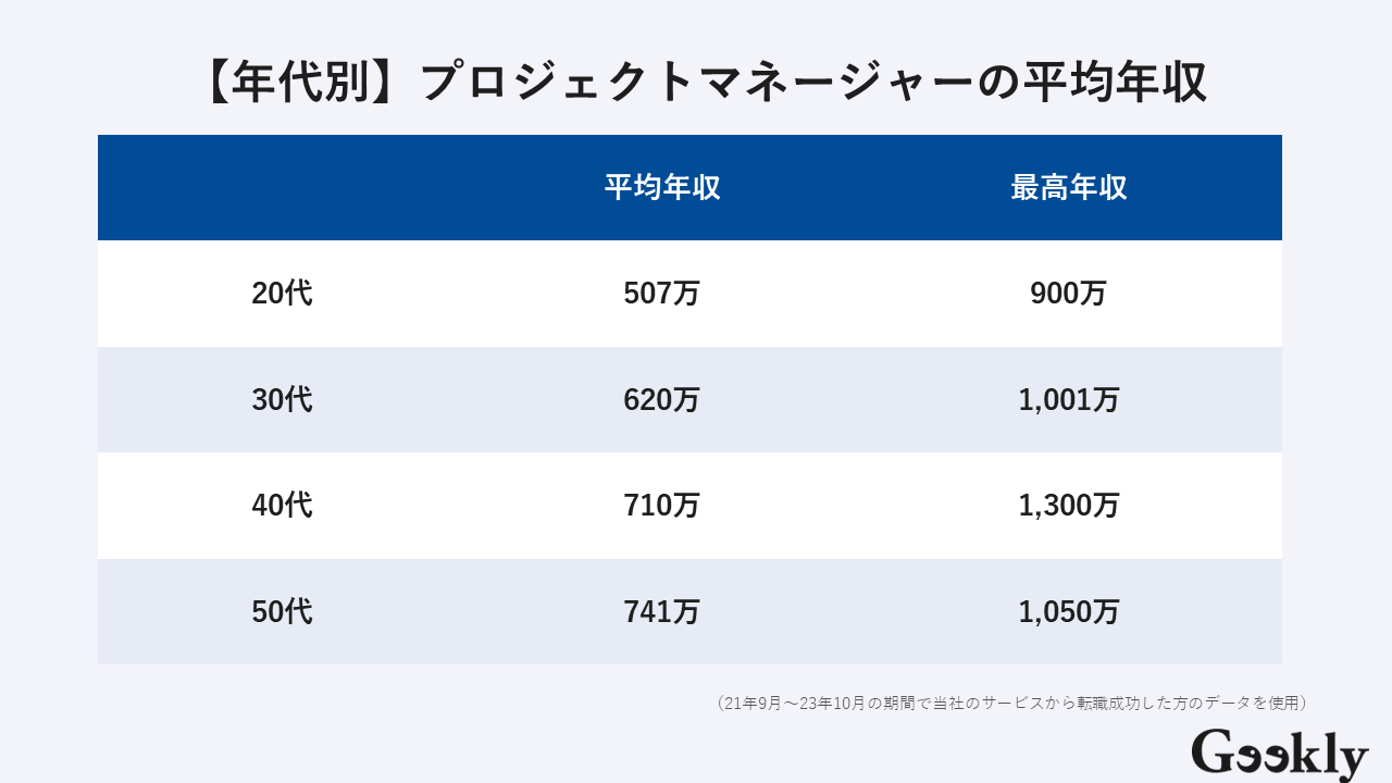 まずはGeekly(ギークリー)のデータでエンジニア全体の年収水準を確認し、客観的な自分の現在地から把握しましょう。