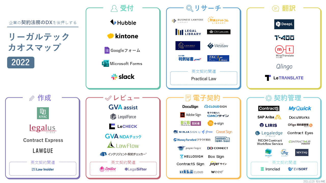 参考:GVA assist『契約法務のDXを後押しするリーガルテックカオスマップ 2022』