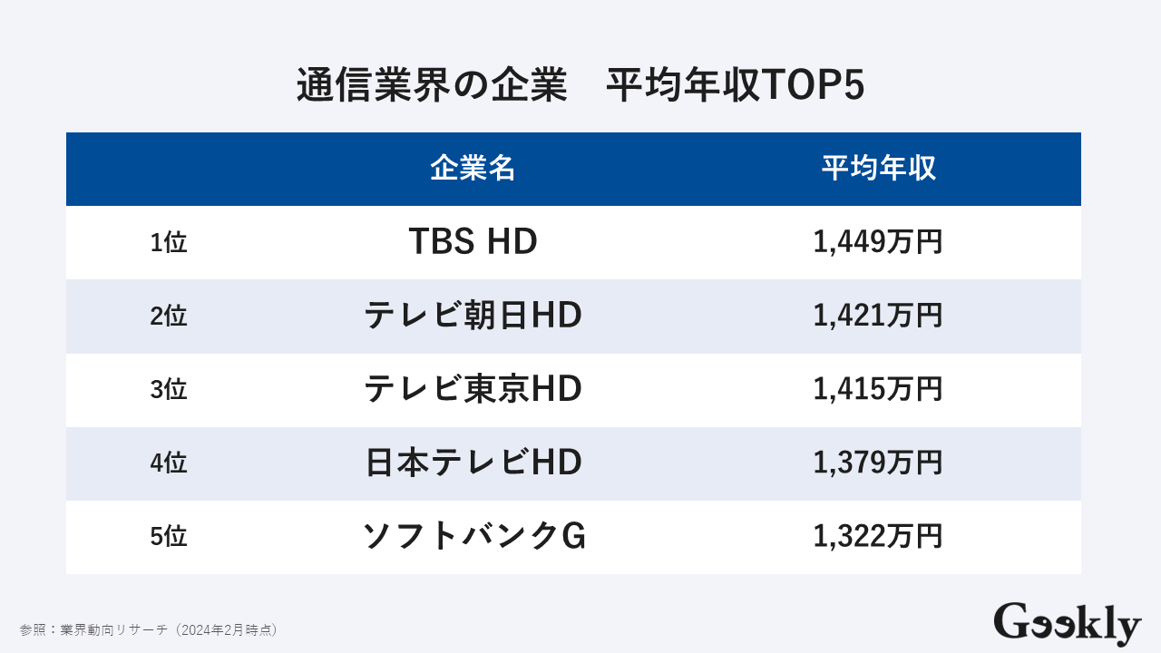 業界動向リサーチを基に、通信業界の売上高・年収TOP5をランキング形式にしています。まずは売上と各社の強みを解説します。
